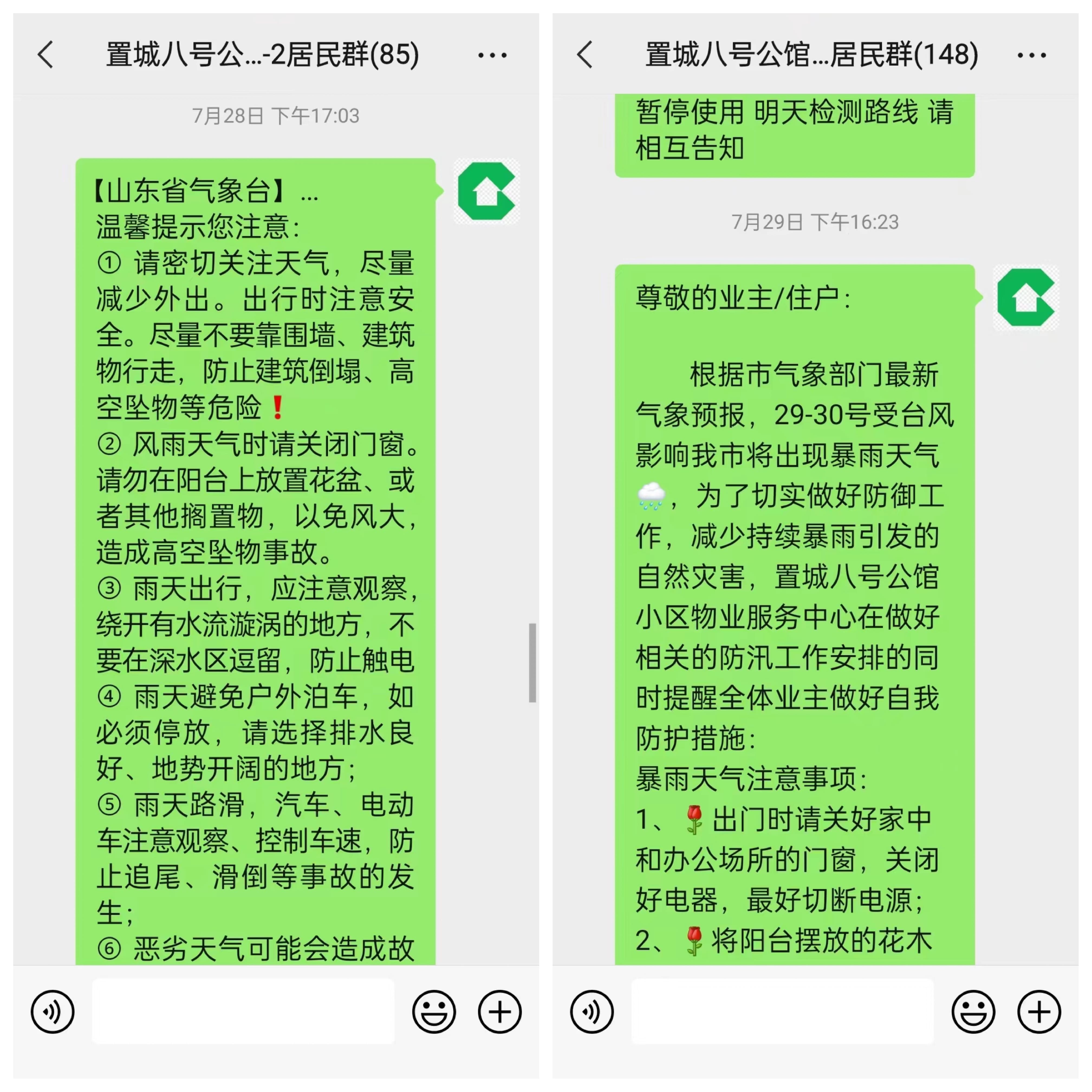 夏季是台风和暴雨频发的季节,诚祥物业各项目接到防御第5号台风“杜苏芮”防汛通知后,立即动员物业工作人员做好防台、防汛相关的部署准备工作,同时客服管家在业主群、公告栏发布台风暴雨来袭的温馨提示,全力保障业主安全。