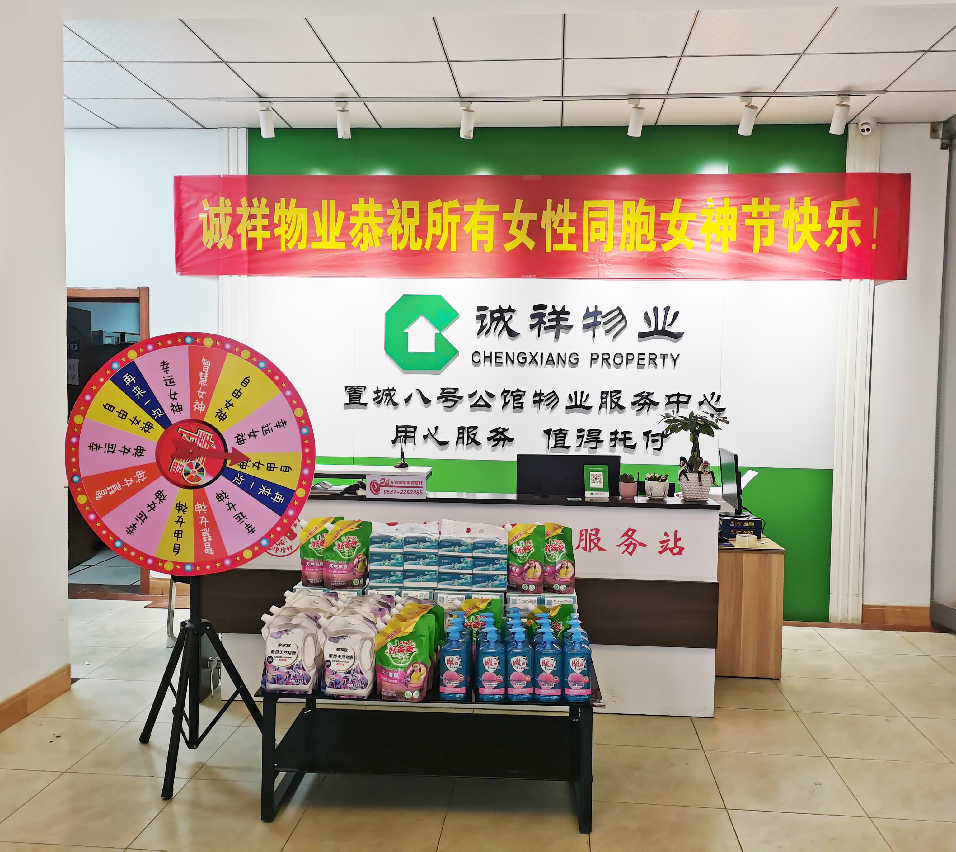 春风十里,最美是你。在这春暖花开的日子里,我们迎来了“三八”国际妇女节,为了庆祝这个美好的节日,让小区的女性业主能够感受到节日的欢乐氛围。3月8日上午,诚祥物业在置城八号公馆开展“快乐女神节·一起转不停”抽奖活动。