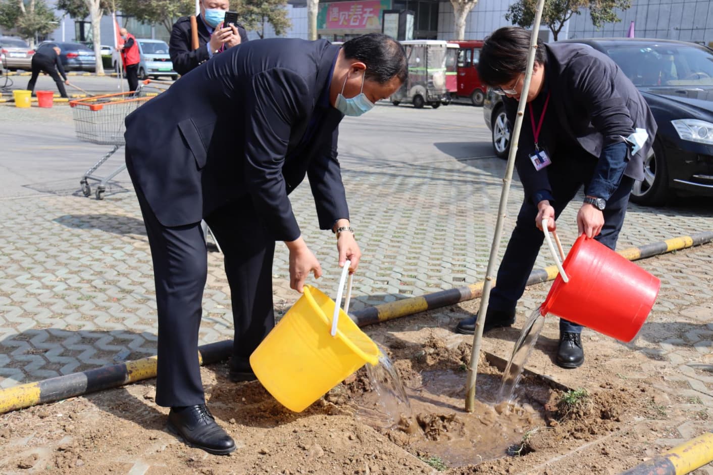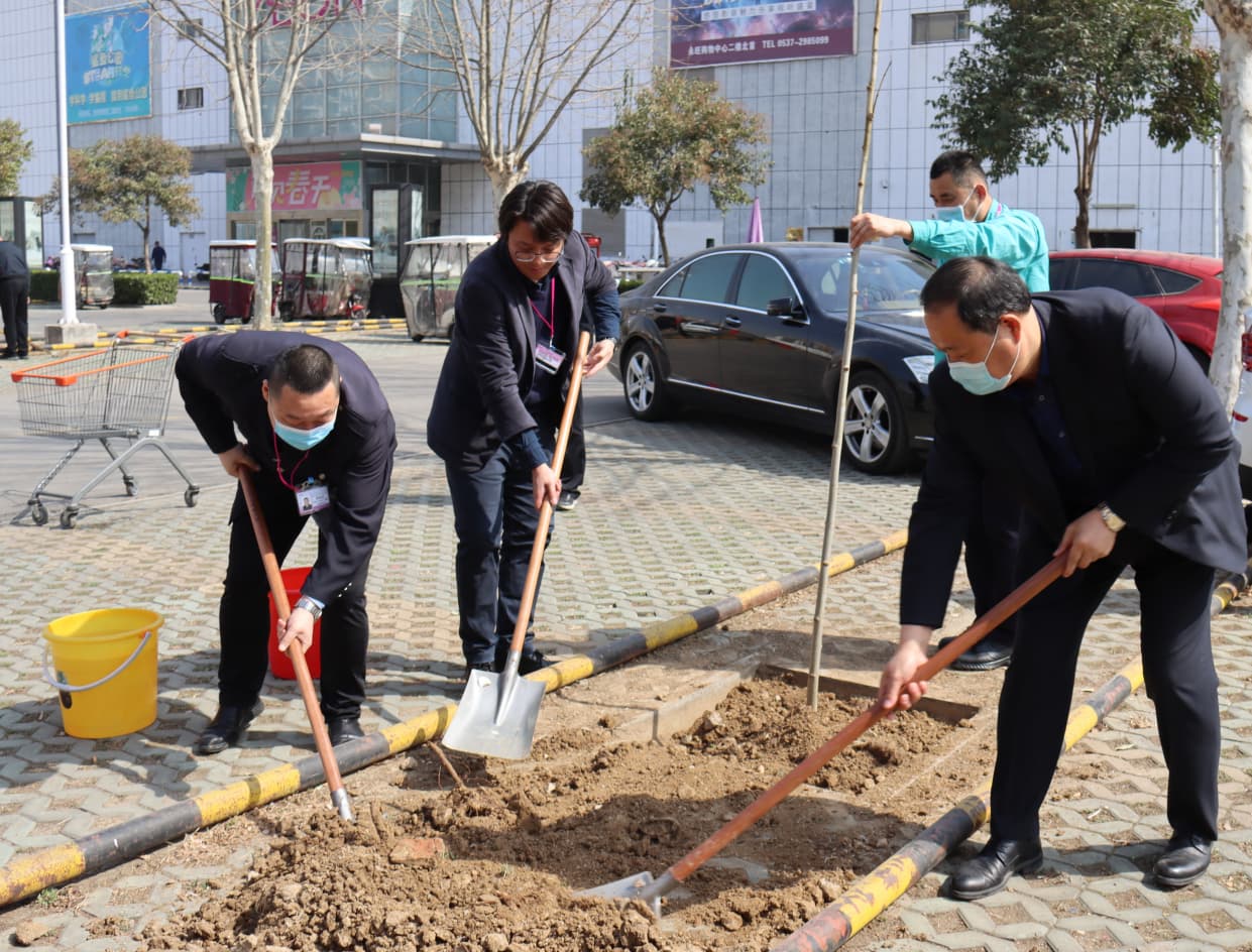 诚祥物业总经理李总和永旺购物中心姜部长亲自来到种植区,挥动铁锹铲土、挖坑、扶苗、浇水......在他们的共同努力下,一株株绿植昂然挺立,焕发出勃勃生机,为园区增添一抹充满生机和希望的新绿。此次植树活动,为进一步增强双方沟通交流创造了一个很好的平台和契机,希望两家公司今后共同携手发展,共创美好未来。