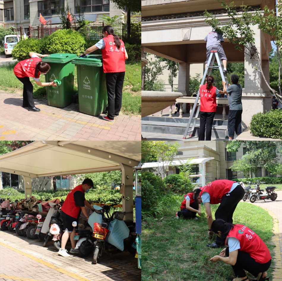 身穿红马甲的党员志愿者们拿着垃圾钳、垃圾袋挨个清理绿化带的垃圾;有的拿着抹布,仔细擦拭小区内的垃圾桶,最大限度减少细菌、病毒的传播,为小区营造良好的卫生健康环境。有的化身为“秩序维护部”人员,对没有停放到指定区域的非机动车辆进行整理;既提升了诚祥物业服务品质,也为业主安全得到了保障。还有的志愿者化身为“绿化部”人员,对园区内的绿化带杂草进行了清理拔除,共同提升小区绿化品质。
