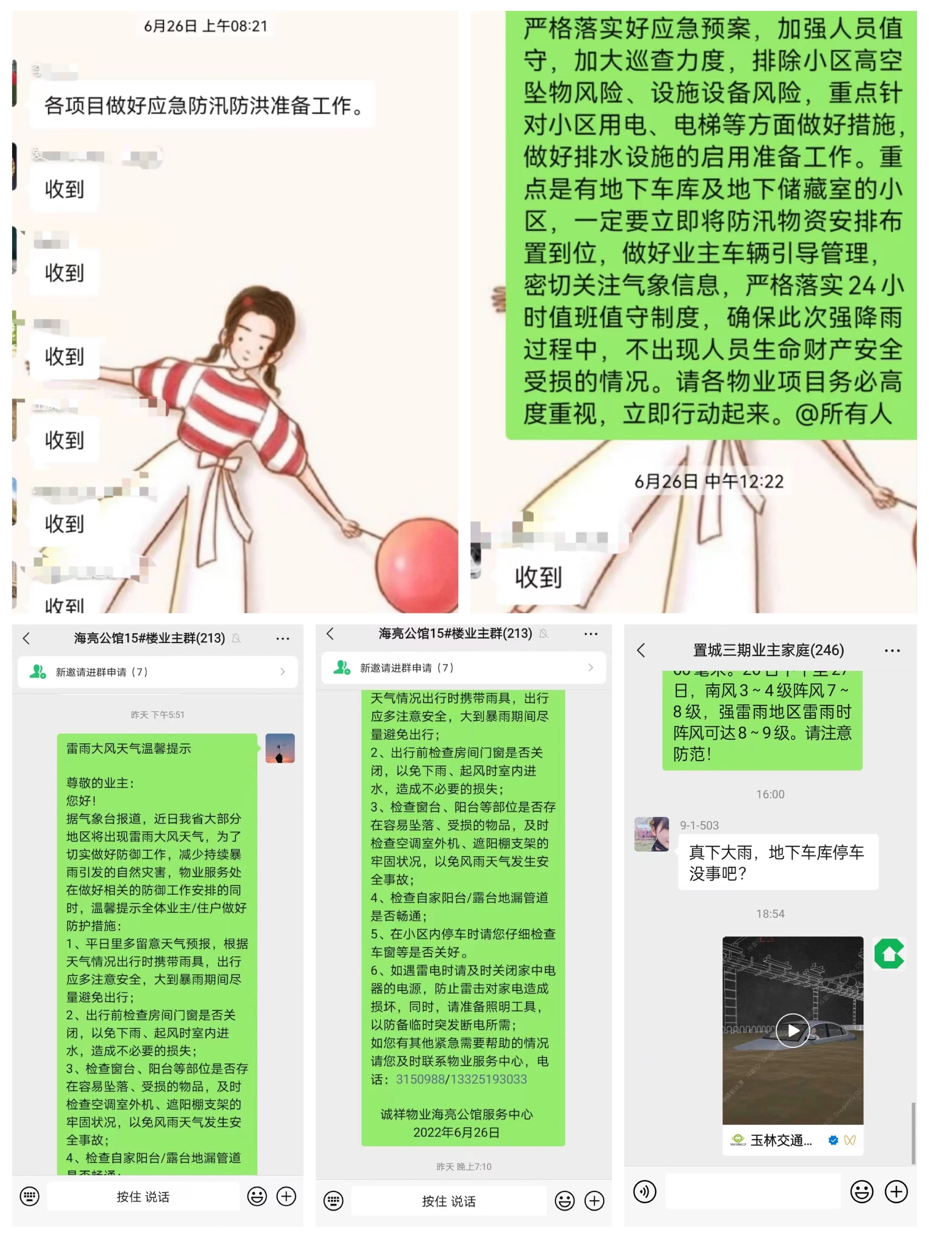 面对汛情的挑战,诚祥物业人奋勇抗汛,从严从实做好汛期的各项防范工作,及时消除潜在隐患,扛起防汛工作职责,确保广大业主的生命财产安全,做到守土有责、守土尽责,为业主保驾护航。