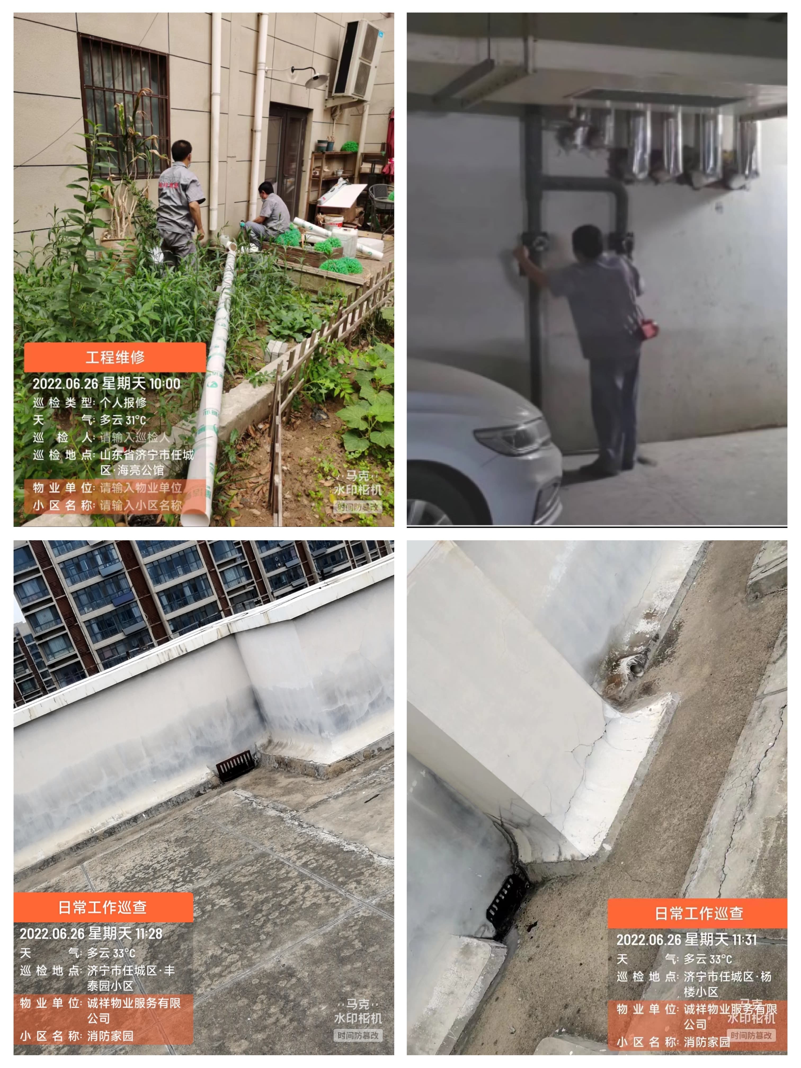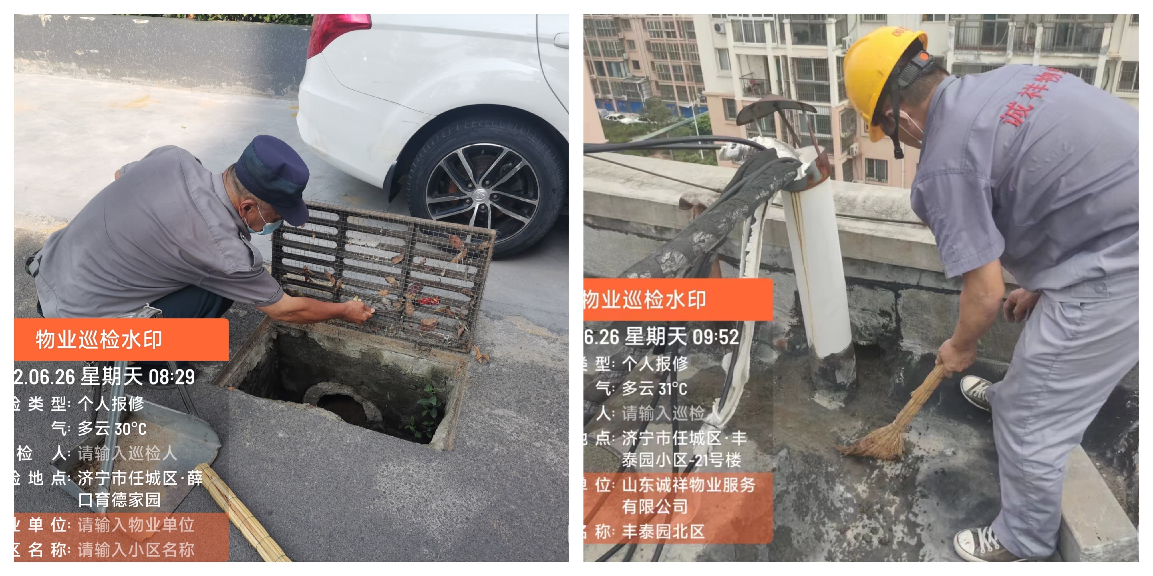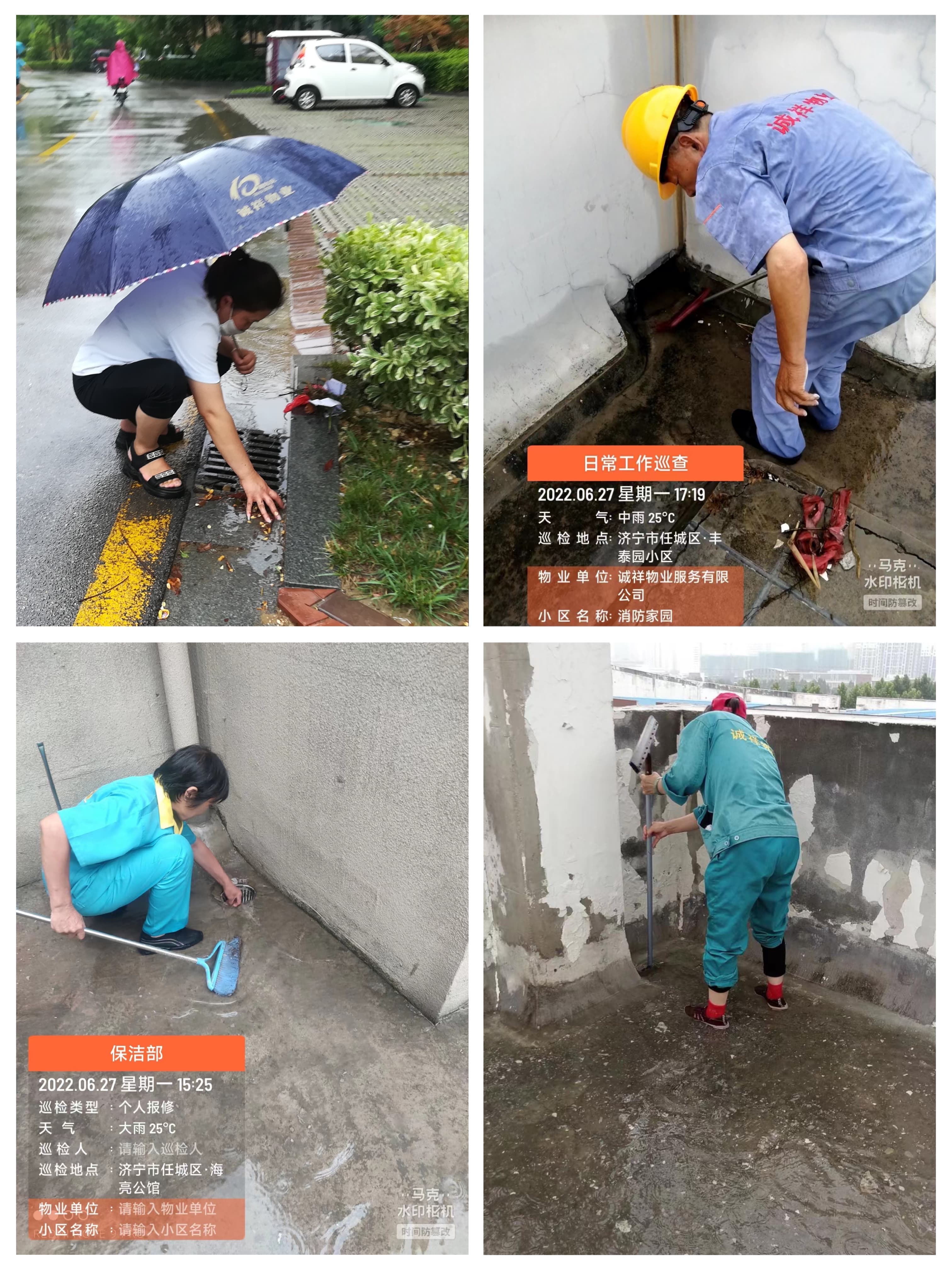 大雨前,各物业服务中心不断加强检查力度,重视防汛物资的投入,并根据公司制定的防汛预案严格要求,全体员工各司其职、相互协作,通过摆放防汛沙袋、清掏雨篦子、检查排水口等措施,对防汛重点区域、低洼易堵地区、地下室、楼顶天沟等进行度汛措施的检查,做到有备无患。