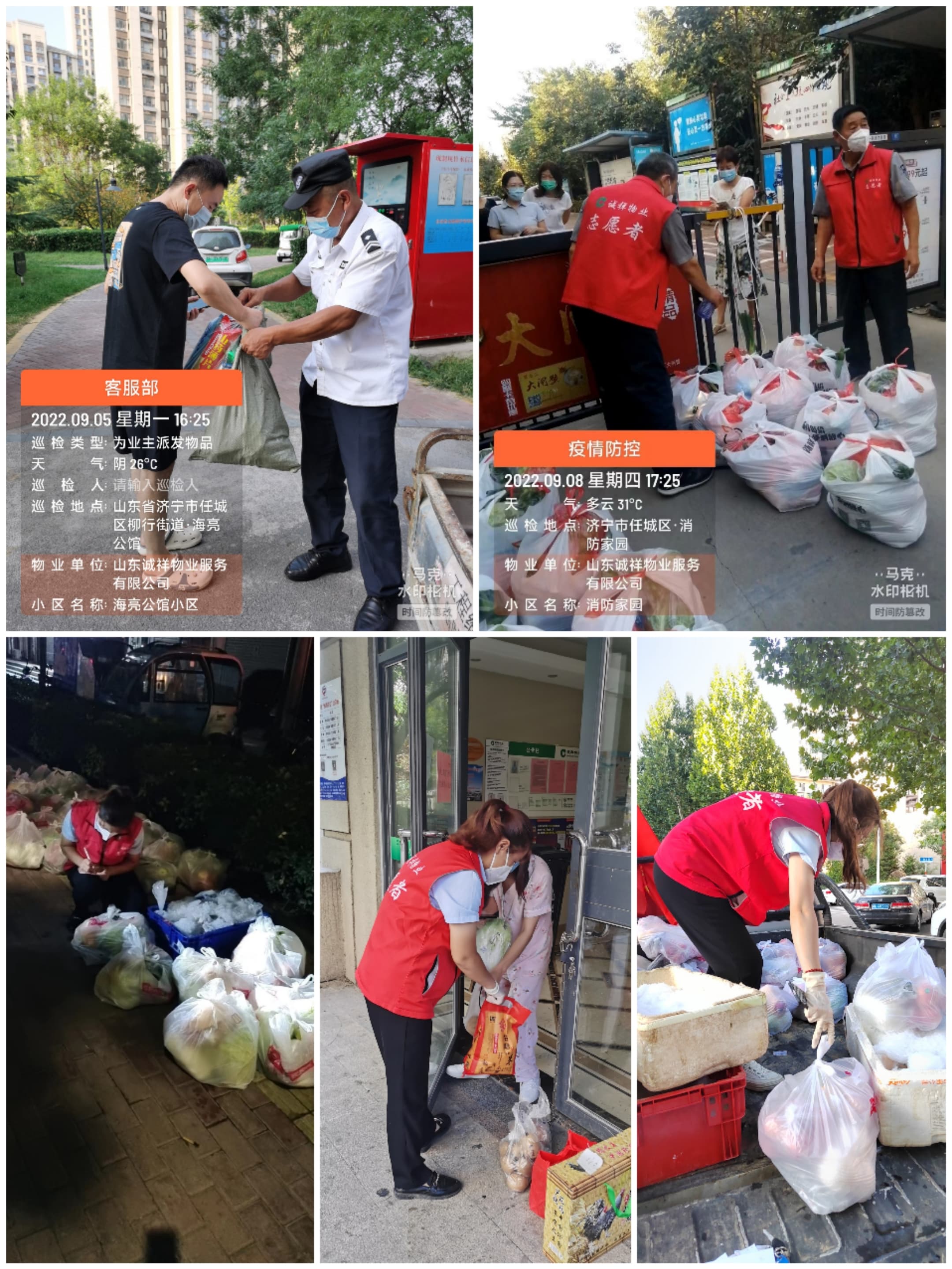 本次疫情防控中,客服、秩序维护员、工程等他们变身“配送能手”,承担了业主取快递、运送蔬菜包、代买药品、生活用品等一系列服务,各项目每天要运送近200件生活物资,让居家隔离人员安心在家隔离,不再为生活必须品发愁。