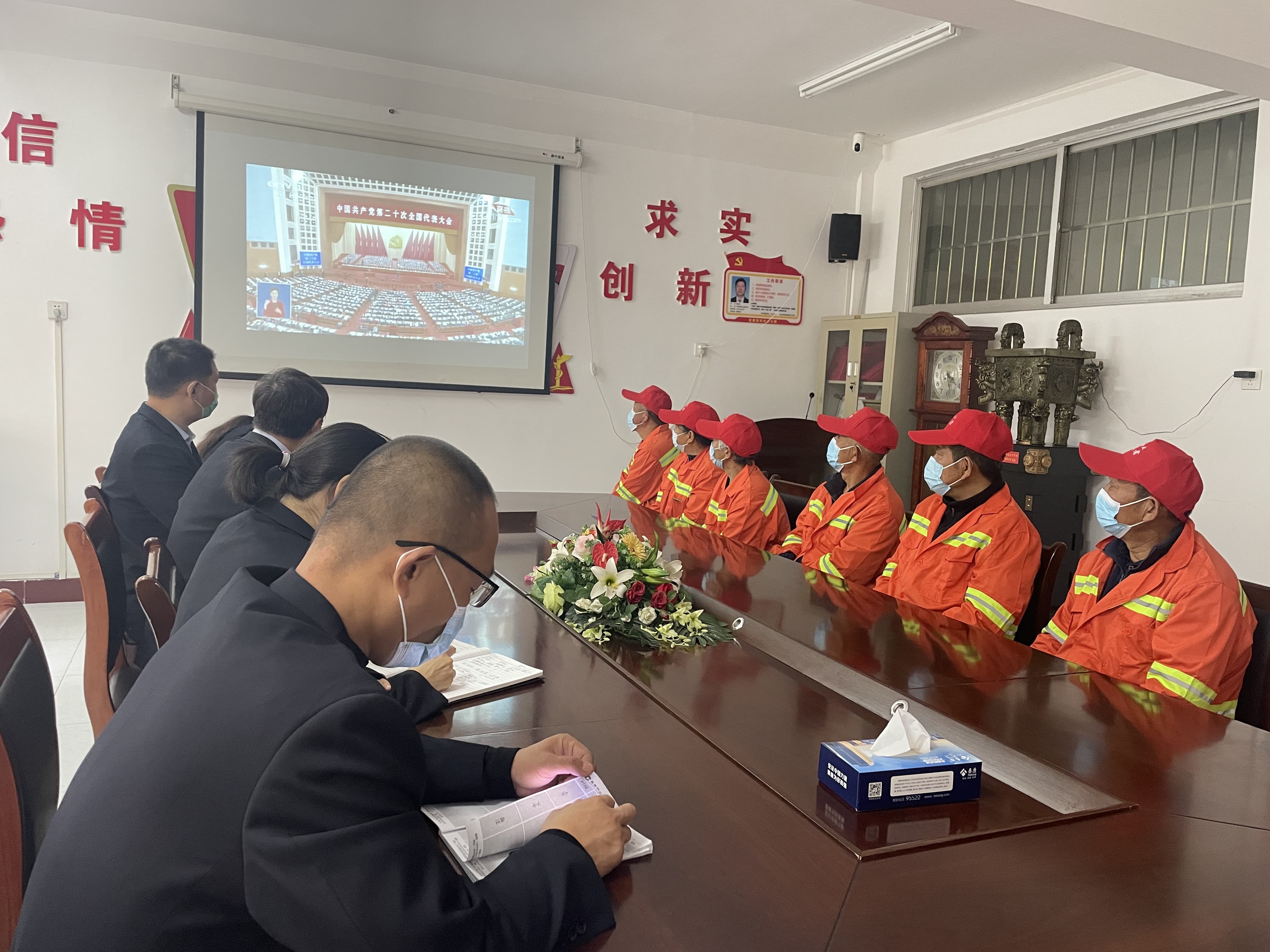 10月16日上午,举世瞩目的中国共产党第二十次全国代表大会在北京人民大会堂隆重开幕。为喜迎党的二十大胜利召开,进一步夯实物业行业党建工作基础,发挥党员的先锋模范作用,诚祥物业党支部组织公司党员、群众及环卫工人代表观看开幕盛况,学习会议精神。伴随着二十大现场国歌奏起,会议室响起了热烈的掌声,大家倍感振奋、反响热烈。