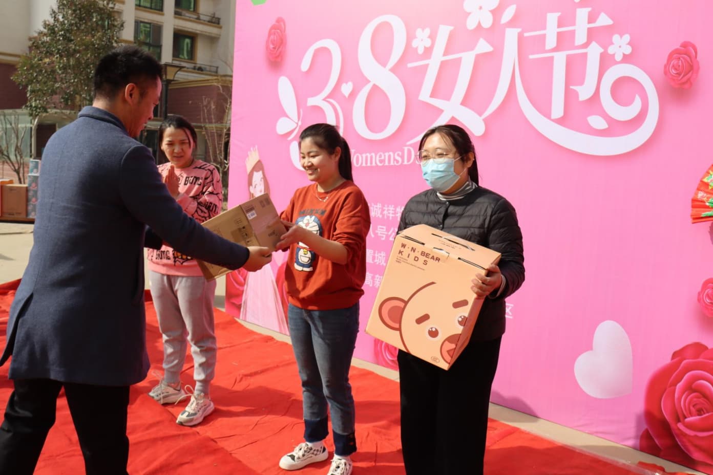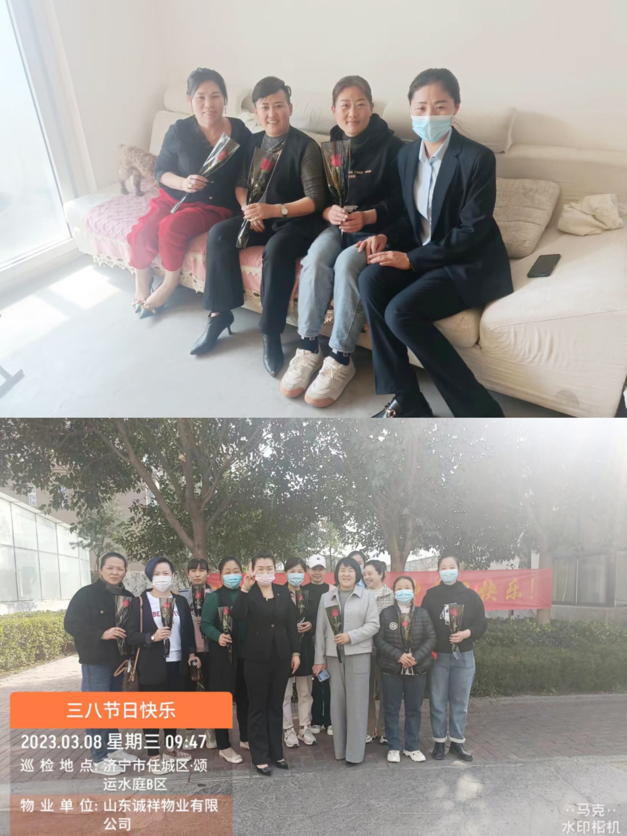 虽然只是一朵小小的玫瑰,但包含了我们浓浓的情意。一朵朵的鲜花送到女性业主的手上,换回的是口罩下藏不住的笑容,当我们亲手把鲜花送到业主手上的时候,她们甜美的微笑,让业主和物业之间的距离拉得更近。