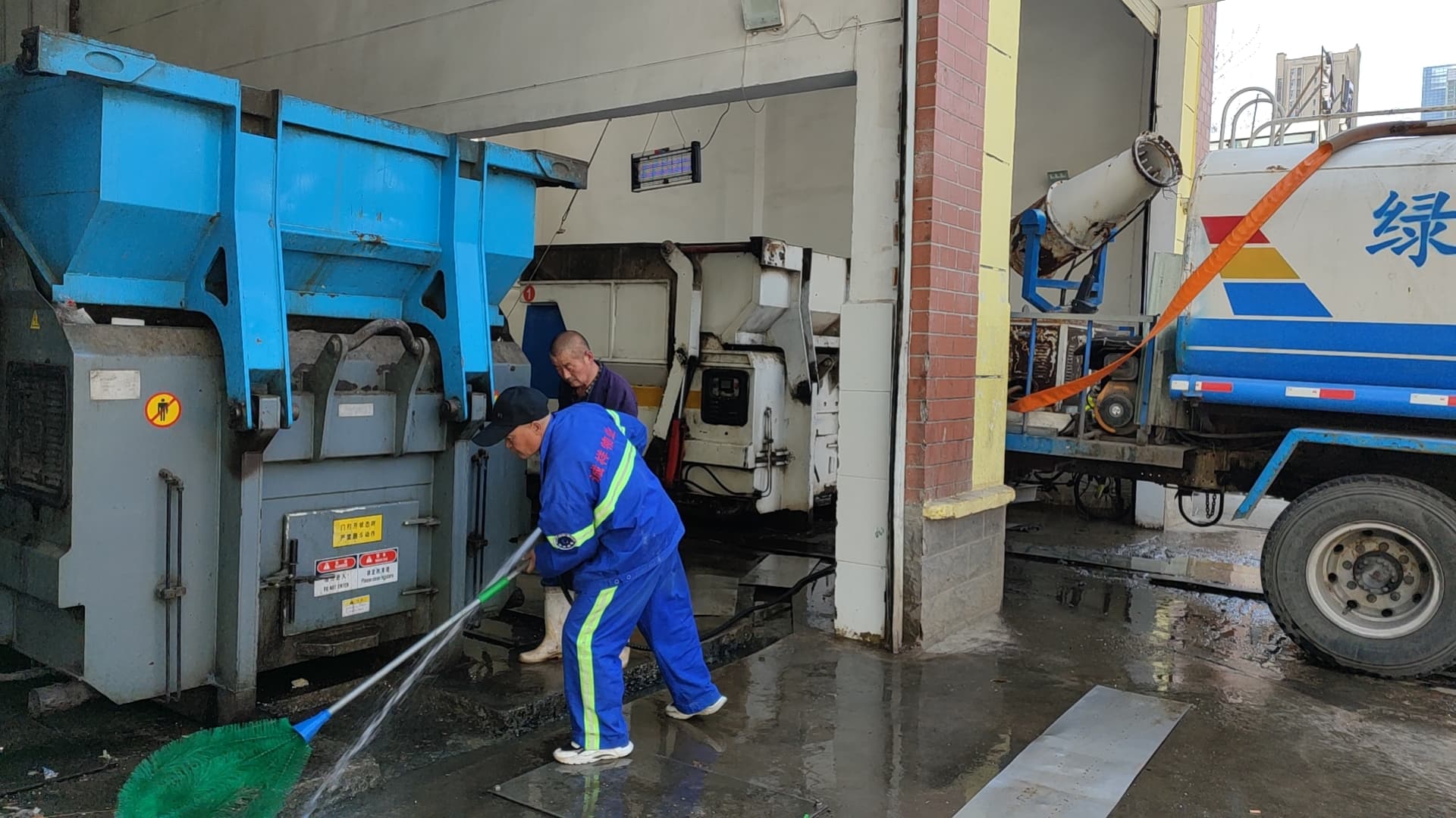 公司加强垃圾压缩站的管理,做到垃圾日产日清,不堆积、不滞留;设施保持整洁干净,周围无污水、无积存垃圾;压缩站内外场地每日冲洗,喷药灭蚊蝇,垃圾渗滤液定期集中处理。环卫工人还在收运车辆出发前对车身和轮胎进行一番消毒、清理,做好垃圾的及时清运,减少垃圾滞留时间。