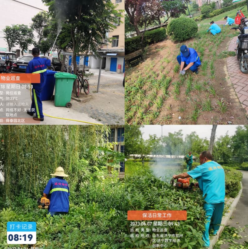 高温炙烤下,保洁工作人员依旧奋战在一线,他们每天清晨就开始劳作,捡垃圾、扫地面、擦拭公共设施、清理电梯槽、擦电梯防护油、刷洗垃圾桶等,他们用勤劳的双手为业主创造干净整洁的生活环境。他们把汗水留给自己,把整洁的环境留给业主。