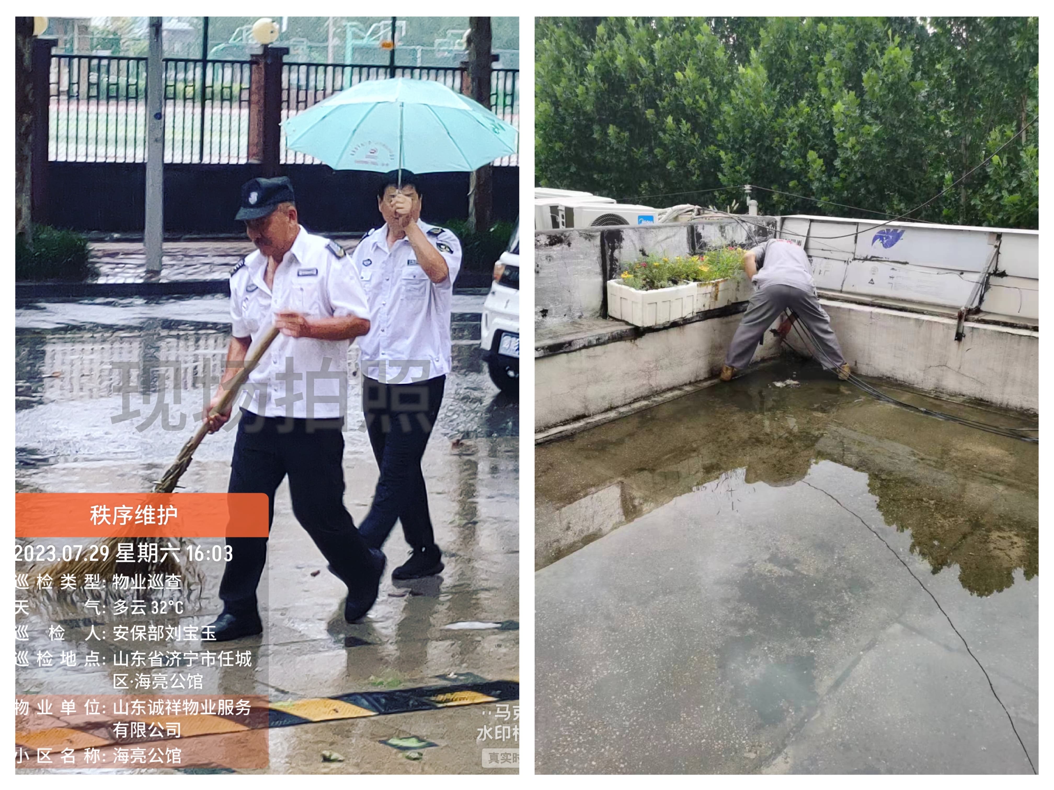 诚祥物业各项目迅速响应,对各类防汛物资安排到位,杜绝安全隐患。此外工作人员还对设备机房及时进行排查,提前采取细化维护措施,并对小区地库、天台、排水管道等容易发生内涝的重点部位进行全覆盖检查。
