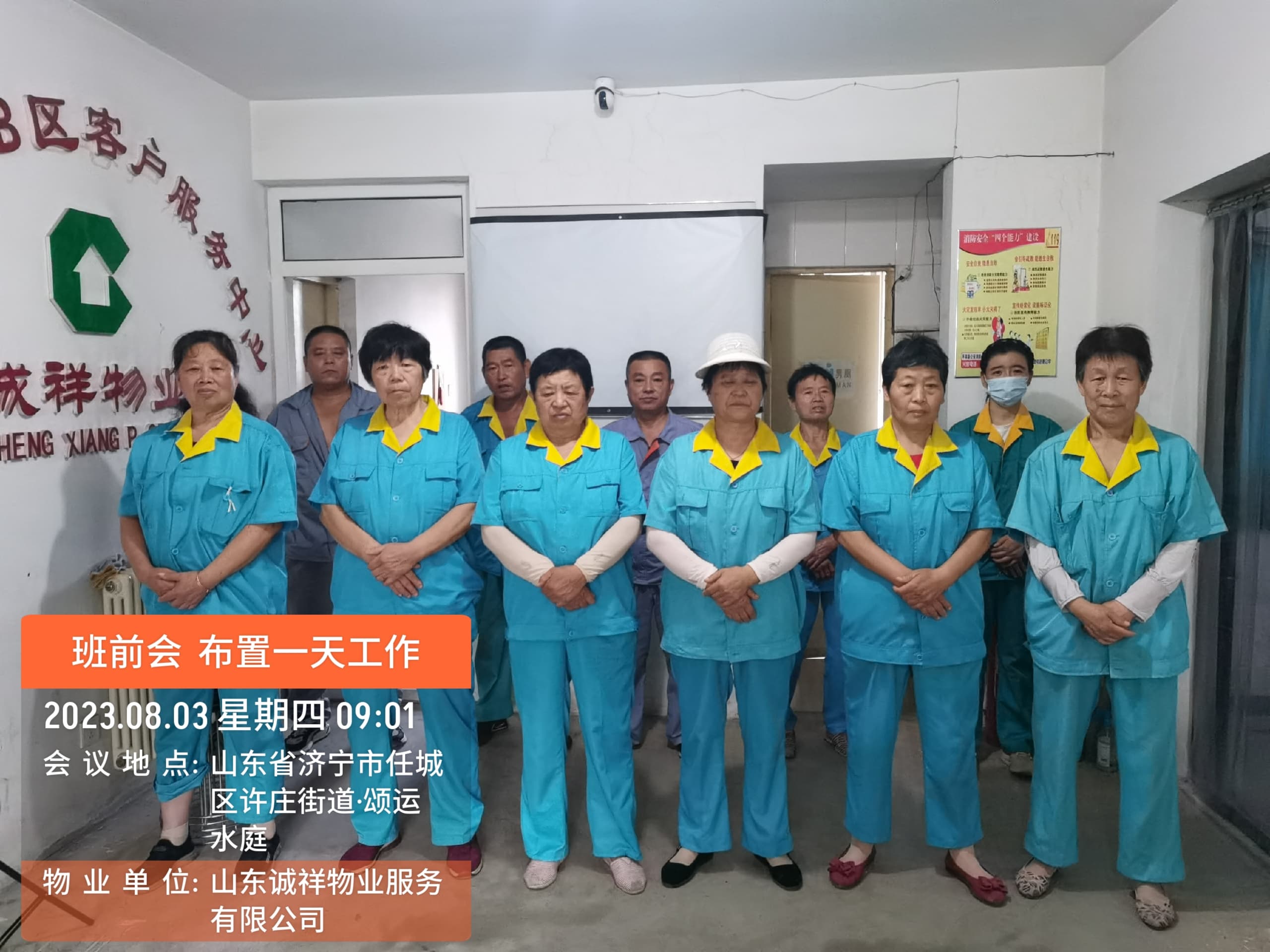 诚祥物业全面实施晨会制度以来,全体员工以归零心态和饱满精神状态迎接新一天的工作。