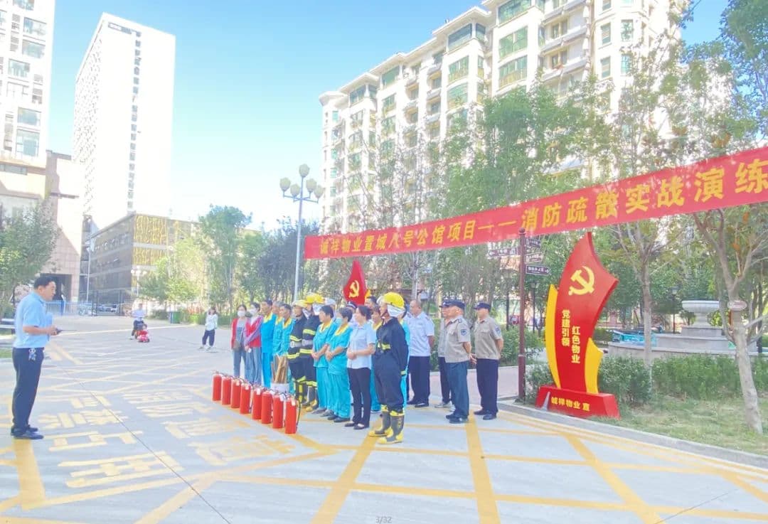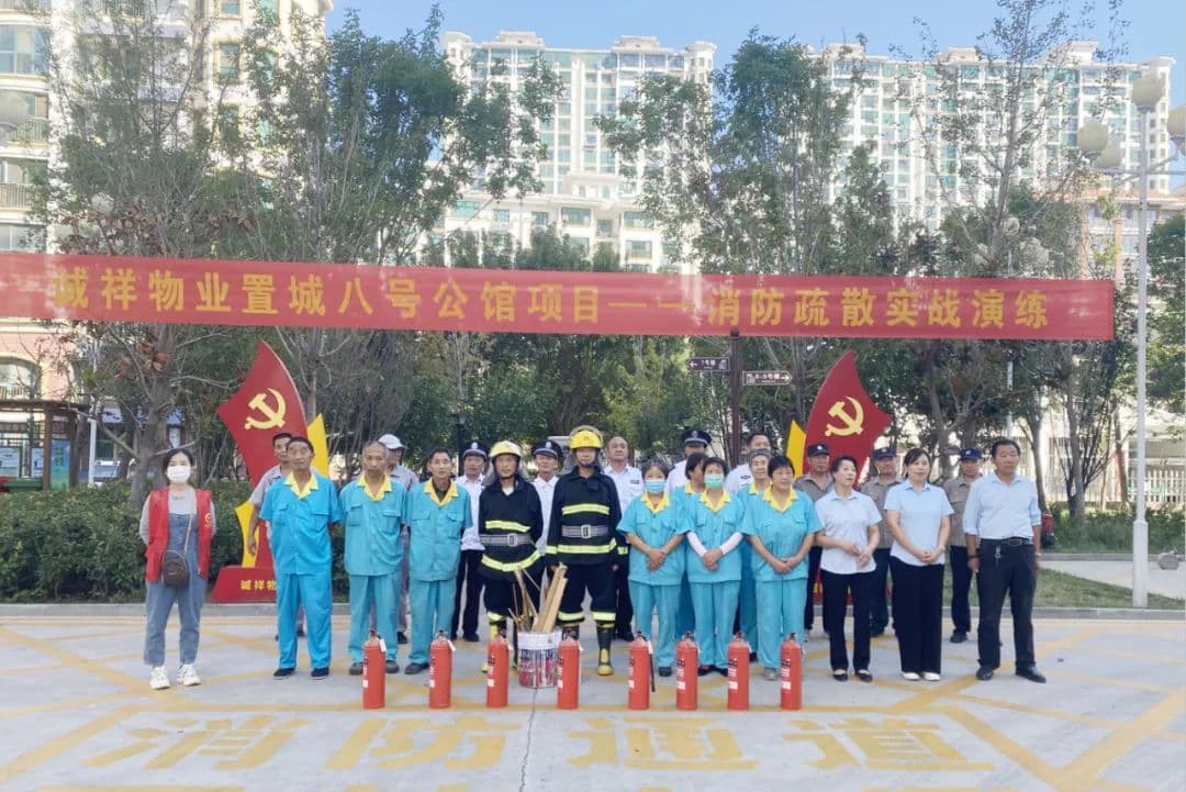 9月22日上午,诚祥物业置城八号公馆项目全体员工开展消防疏散实战演练。
