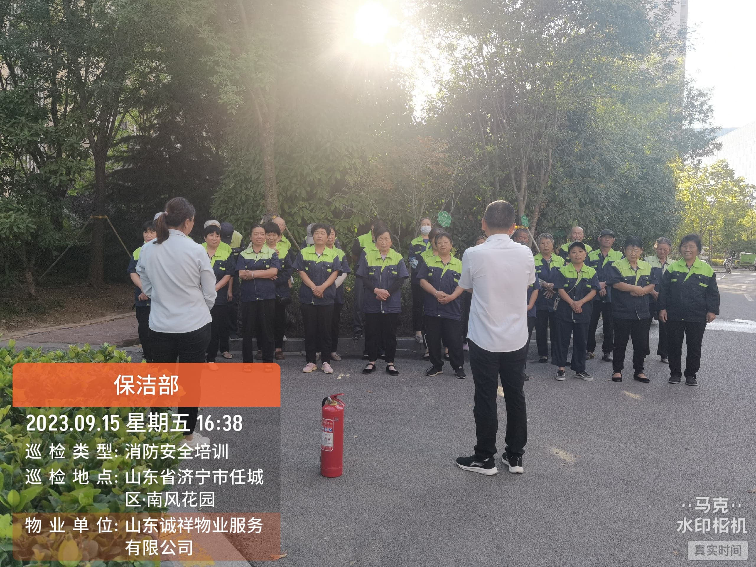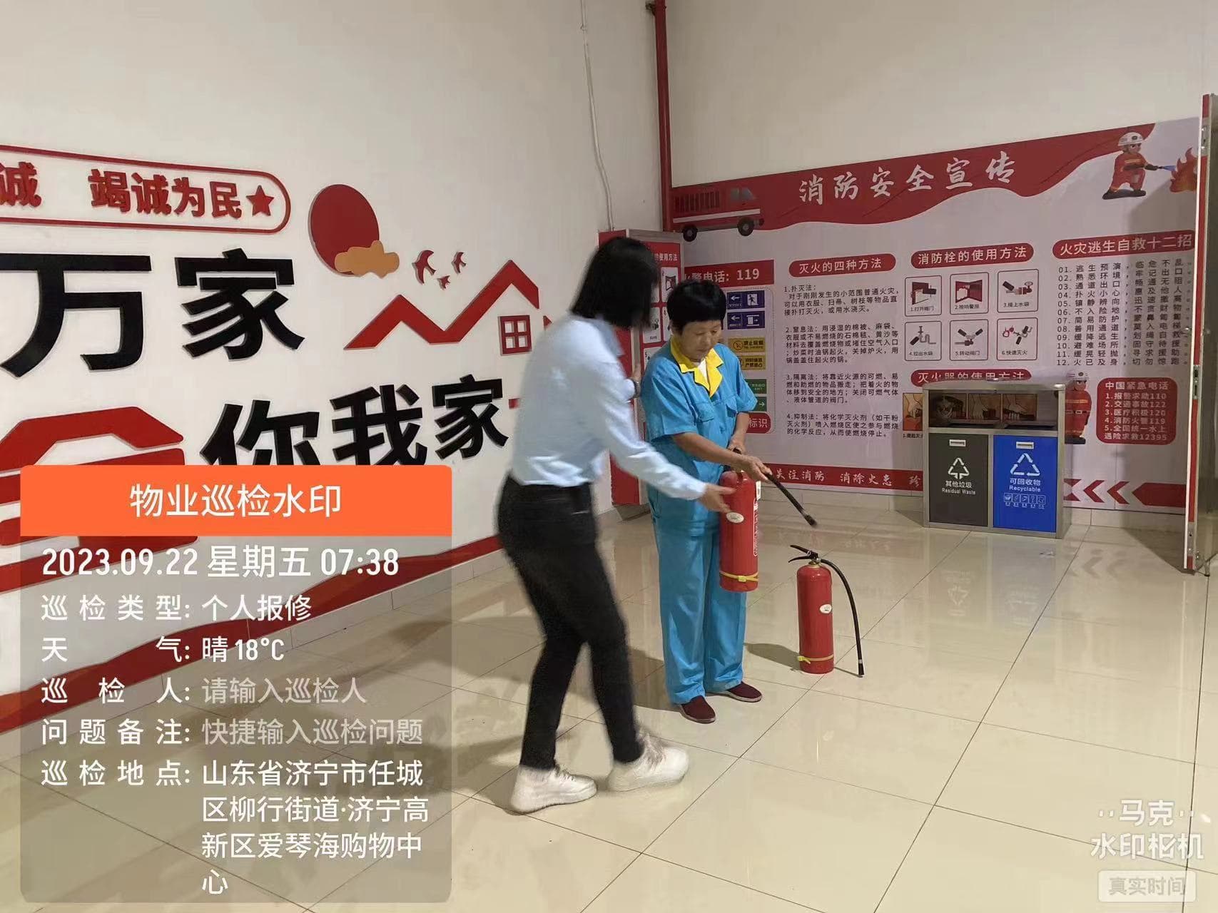 9月15日下午,诚祥物业永旺购物中心项目开展消防演练活动。现场主讲人演示了消防器材的使用方法,并手把手实际指导参培人员进行操作。