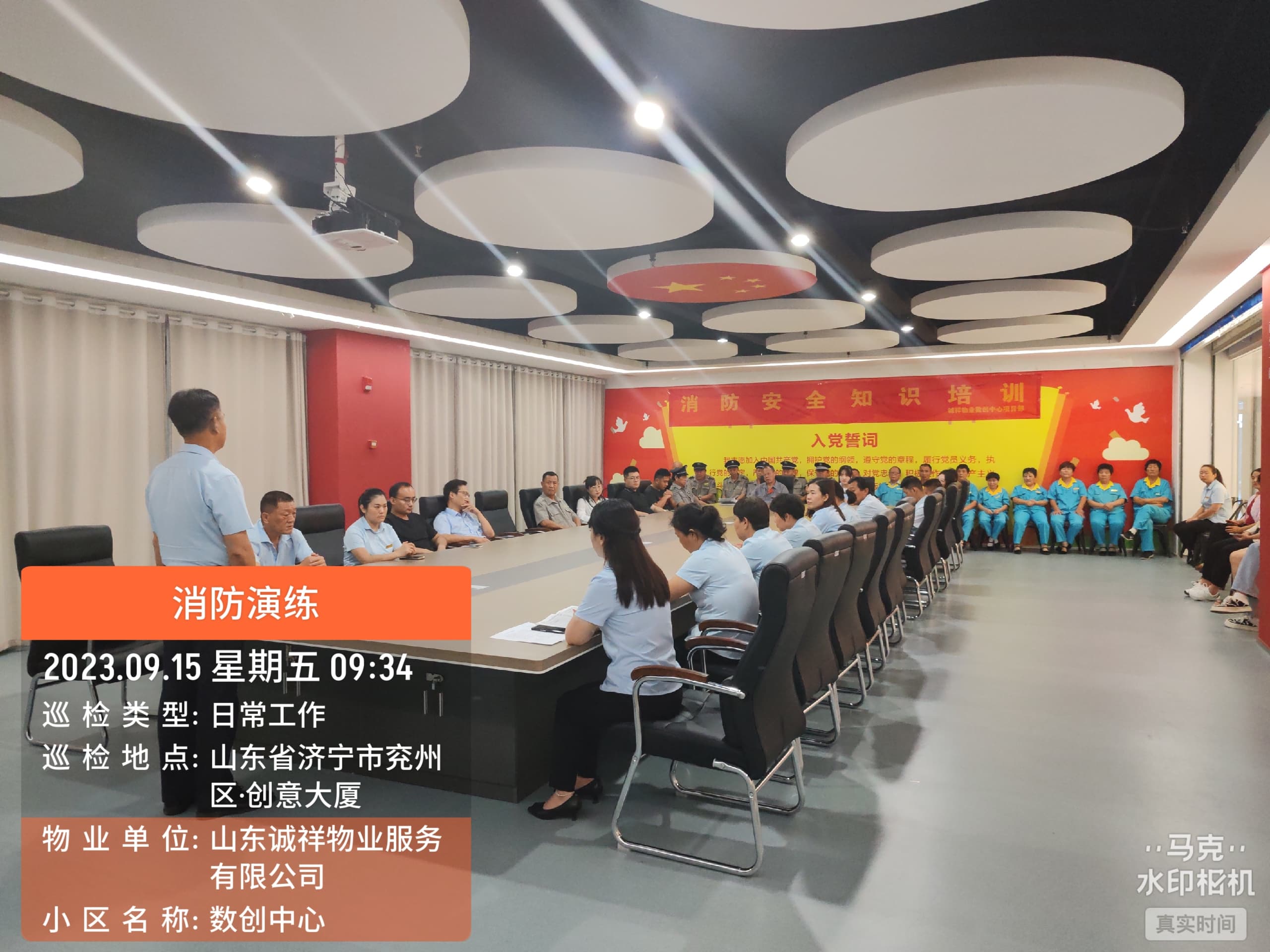 9月15日上午,诚祥物业数创中心项目全体员工联合甲方领导、各企业代表开展消防培训、实操演练活动。