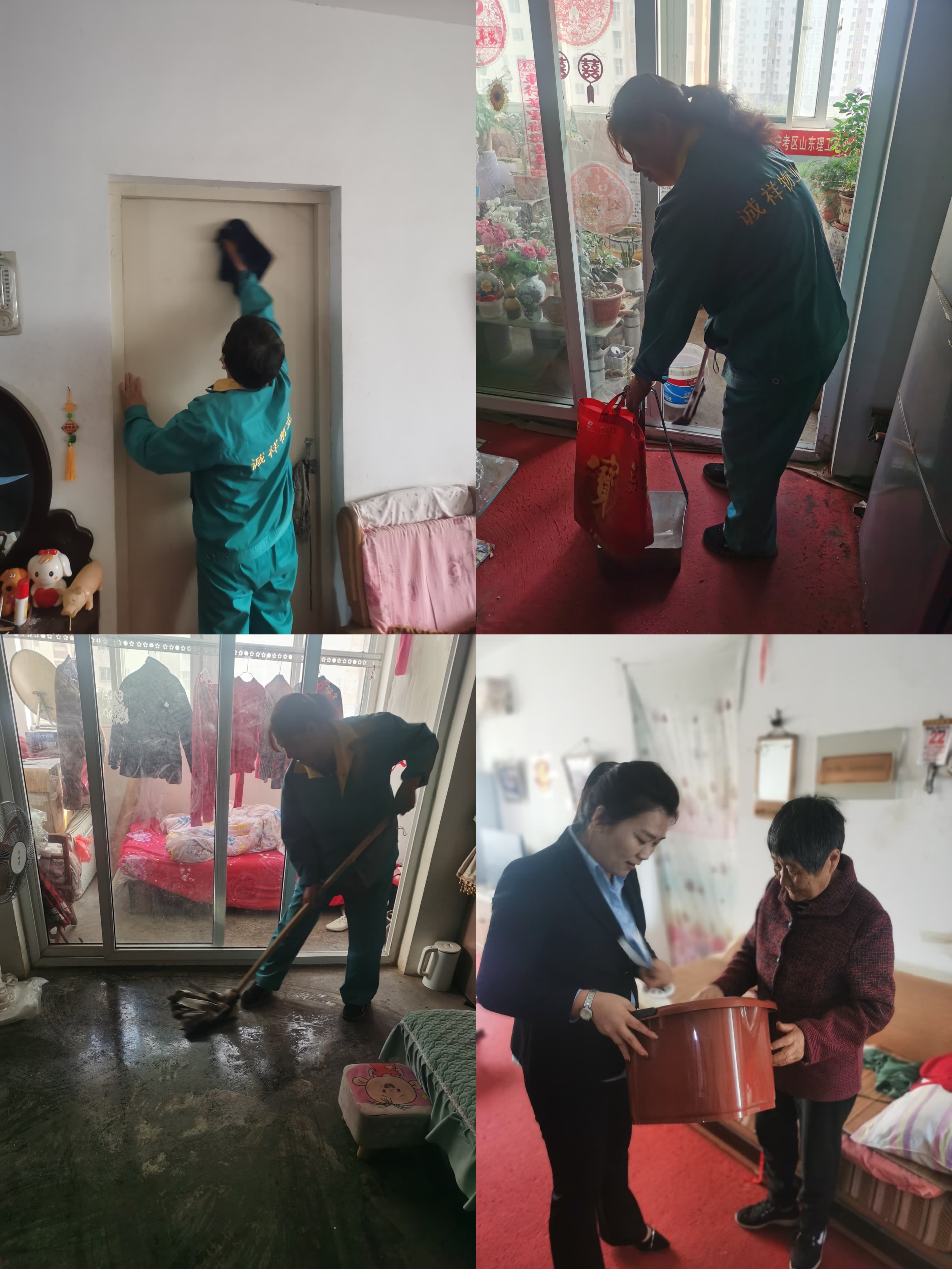下午,项目负责人李经理带领员工看望小区内的独居老人,帮助老人们打扫卫生,并为老人们送上了节日的祝福和暖心的慰问品。