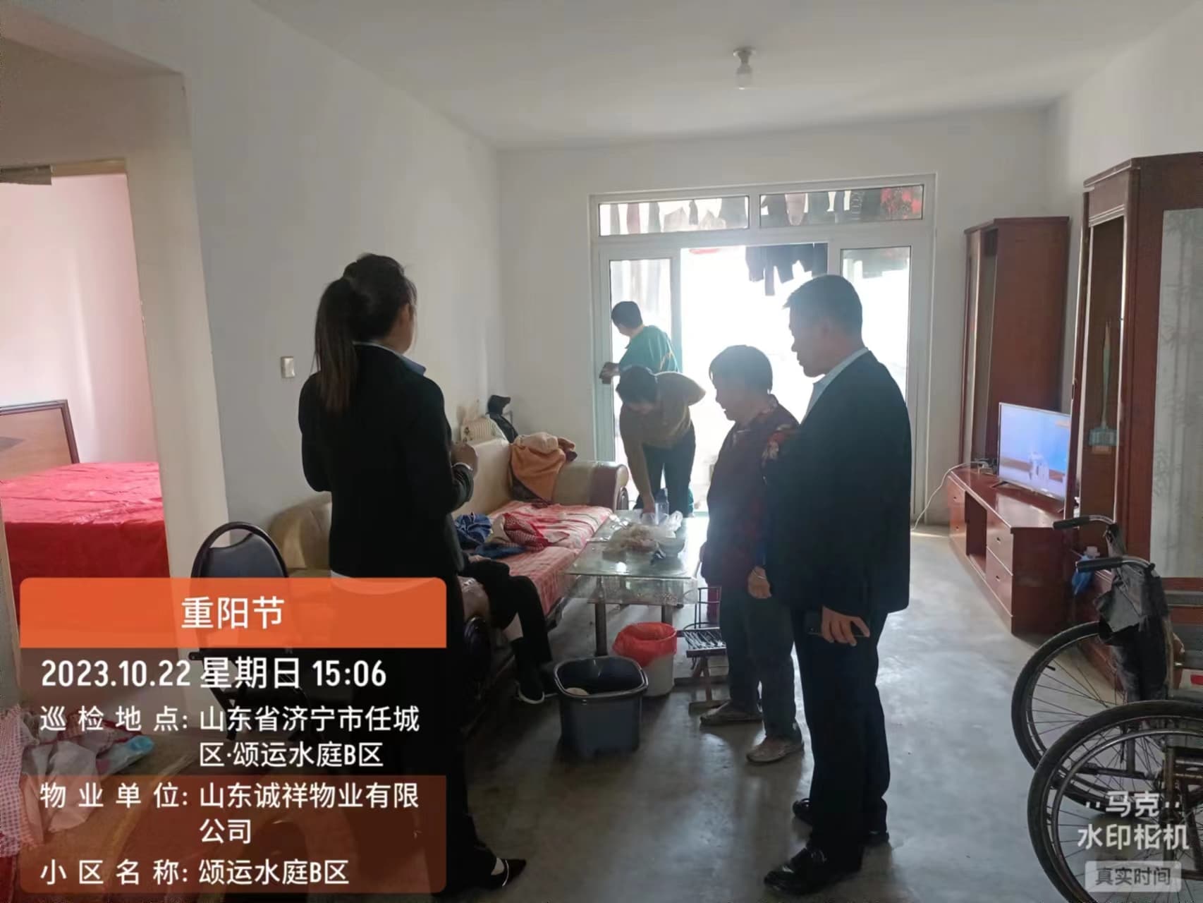 10月22日下午,颂运水庭B区开展重阳节温情服务活动,物业工作人员上门与老人谈心、为老人打扫卫生、检查户内电路等,让老人们感受到节日的温情。