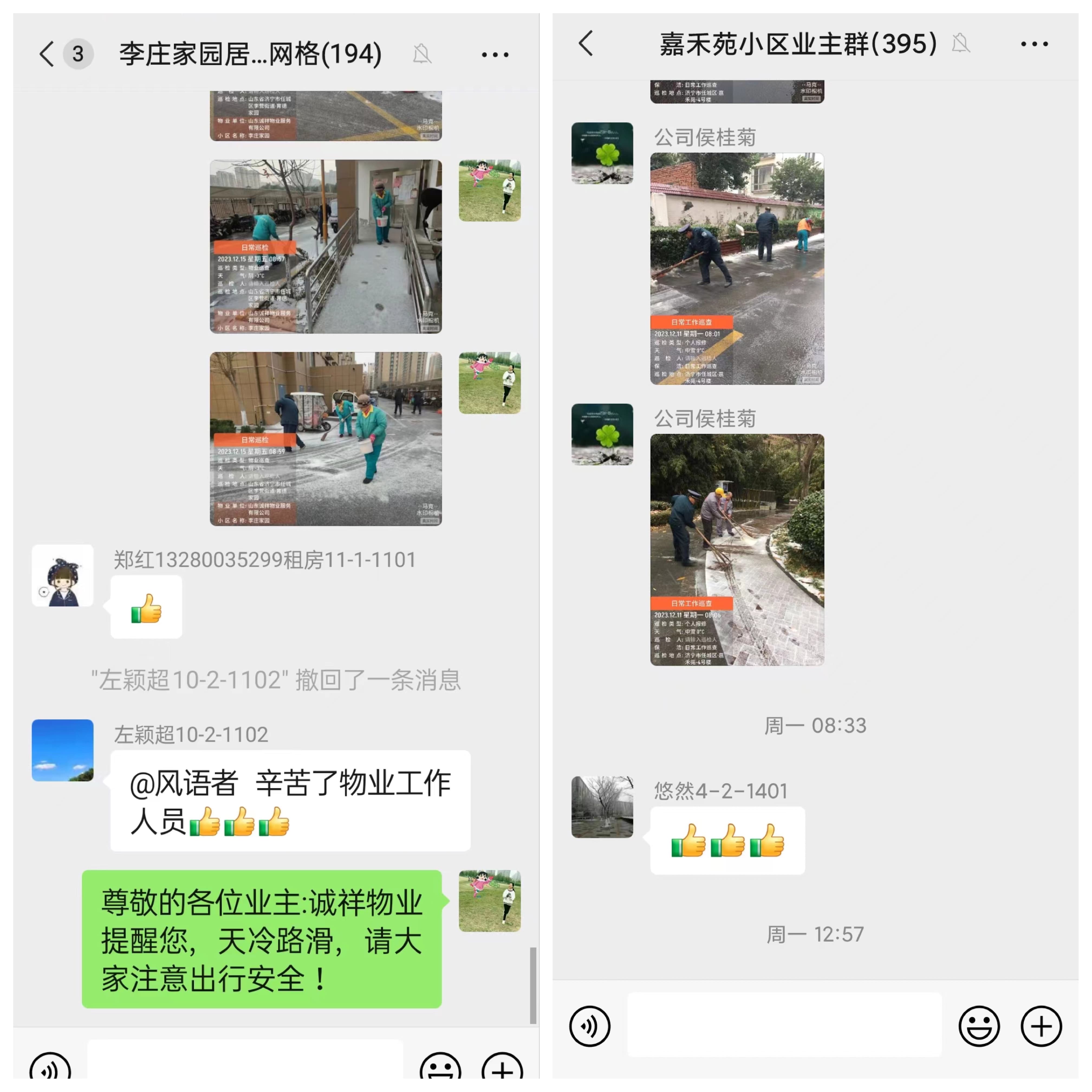 同时,员工们干劲十足的身影也得到了许多业主的赞赏,而业主的肯定和赞许更增添了他们雪中奋战的激情,清雪的热情就像冬日里的暖阳融化积雪,又温暖了业主的心。