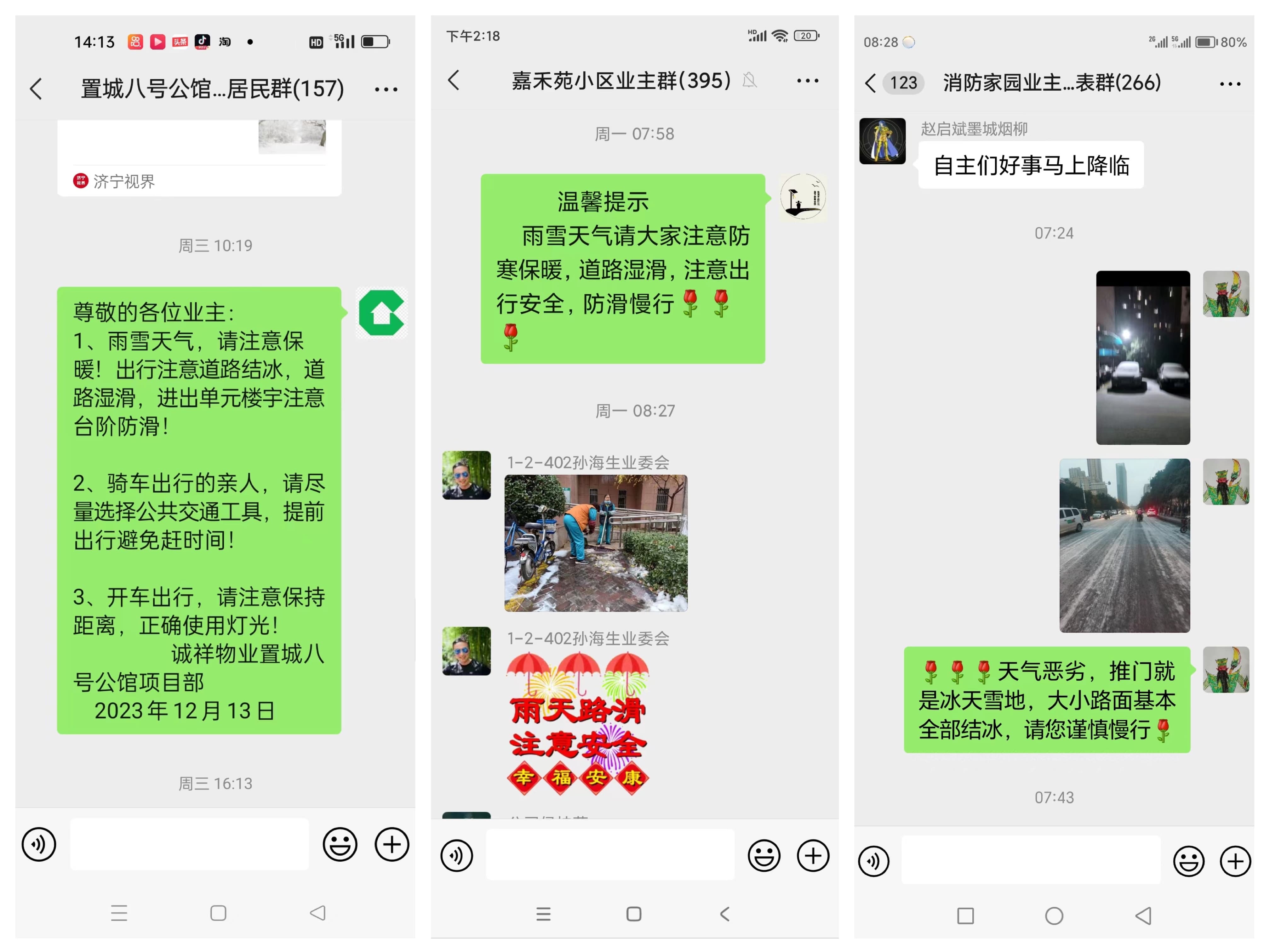 突如其来的大雪不仅考验了诚祥物业的应变能力和保障水平,同时,也考验着诚祥人的责任与担当。他们用实际行动,为广大业主扫出一条出入“平安路”。下一步,诚祥物业各项目将持续加强对极端天气及路面防冰防雪的安全监管力度,加强园区巡逻,及时清理路面残留的积雪,跟进后续除雪作业,确保各项目人行出入口及车库出入口保持畅通,筑牢冬季安全防线。